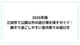 - 半日で回したい: 駅前や新三田周辺の屋内系と、一か所の屋外系を組み合わせると無理が出にくいです。
